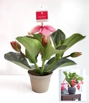 De clusia is een exotische kamerplant die weinig verzorging vraagt en gegarandeerd een blikvanger is. De clusia rosea genoemde schoonheid is een succulenten soort en hoeft geen substraat nodig. Daardoor kan ze zonder aarde worden gehouden. De plant is zeldzaam mooi en zeer decoratief! Wij leveren de clusia inclusief een glazen pot. Het enige wat u hoeft te doen is wat water bij te vullen voor het wortelgebied – dat is alles. Als het water bijna op is, kunt u deze weer bijvullen. Meer zorg is niet nodig.